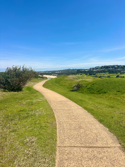 The walk from Fishermans Beach up to Long Reef Headland and back is roughly 2kms. Starting at Fishermans Beach, the path heads north along the shore before climbing onto the headland. It’s a mix of gentle ups and downs with some gravel patches and boardwalks but nothing too challenging. Most of the path is concrete paved.